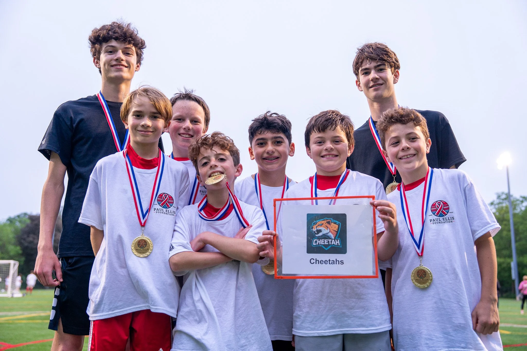 On Friday May 30th 2025, we co-hosted a fundraising event with Rockville Centre Soccer Club at the Rockville Centre Sports Complex (Bralower Field) to honor Coach Paul. The event featured soccer tournaments, where young players of Rockville Centre Soccer and others were invited to form teams and recruit players to participate. Along with ~115 players, we had 35 high school volunteers who generously dedicated their night to promoting our cause, coaching teams, refereeing games, working at sign in booths, and even running our concession stand.